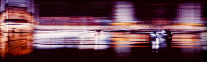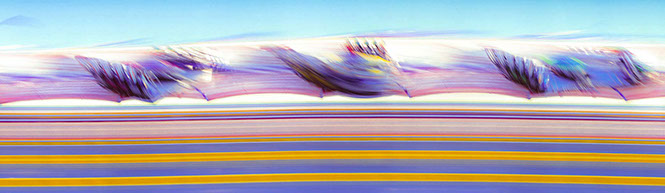 This series of pictures examines the question of how analogue photography can depict a temporal process in one motif. These photographic works show a period of time that is linearly visible on the film from left to right.